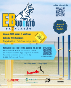A Bohémia Kutyaiskola (Dunakeszi) és a Soroksári Kutyaiskola (Budapest) első alkalommal hirdeti meg az “Ebugrató Bajnokság” barátságos akadályversenyt. Versenyünk nem agility verseny, egyedi akadályokkal és saját versenyszabályzattal rendelkezik. Nevezni bármely fajtájú, méretű, legalább 1 éves, jól szocializált kutyával lehet, előképzettségtől és tudásszinttől függetlenül. Tehát szeretettel várunk minden vállalkozó kedvű kutya-gazdi párost, próbáljátok ki magatokat jó hangulatú versenyünkön!